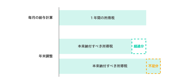 - ① 毎月徴収していた額はあくまで概算であり、12月の年末調整で初めて金額が確定するため