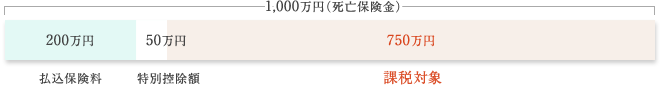 例:妻が死亡して、1,000万円の保険金を受け取ることになりました。今までの払込保険料は200万円。この場合の課税される税金は?