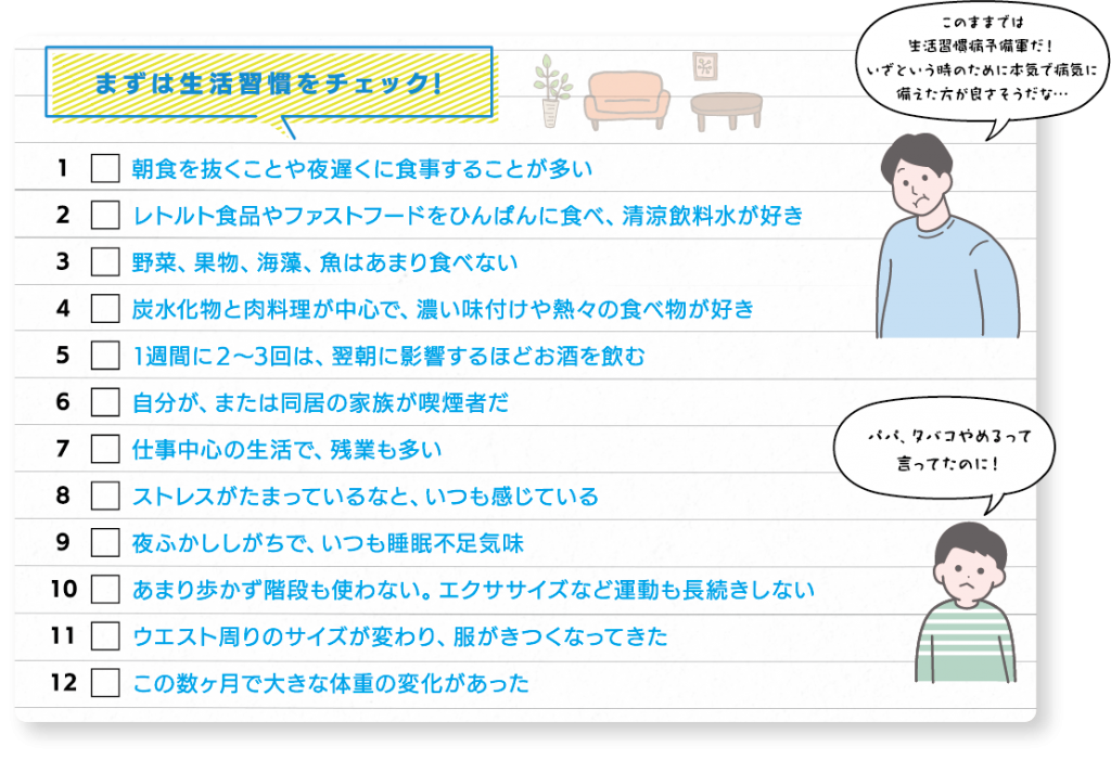では、生活習慣病を招く日々の習慣とは…?あなた自身やご家族は大丈夫でしょうか?