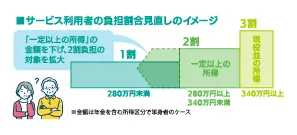 介護保険利用時、1割負担に該当する方の基準を見直し、2割負担の対象者を増やす案があります。