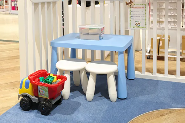 - お子さま連れの方が落ち着いて保険の相談ができるよう、店内に絵本やおもちゃを揃えたキッズスペースがございます。楽しく待ち時間を過ごせるように工夫しておりますので気兼ねなくお越しください。