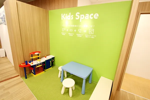 - お子さま連れの方が落ち着いて保険の相談ができるよう、店内にキッズスペースがございます。絵本やおもちゃを揃え、楽しく時間を過ごせるように工夫しております。