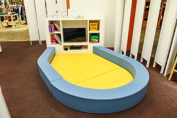 - お子さま連れの方が落ち着いて保険の相談ができるよう、店内にキッズスペースがございます。絵本やおもちゃを揃え、楽しく時間を過ごせるように工夫しております。