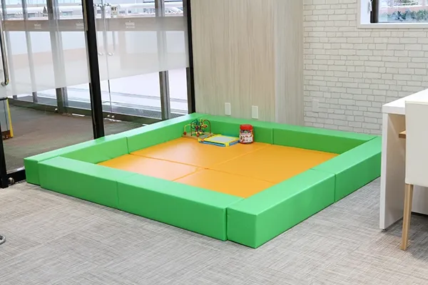 - お子さま連れの方が落ち着いて保険の相談ができるよう、店内にキッズスペースがございます。絵本やおもちゃを揃え、楽しく時間を過ごせるように工夫しております。