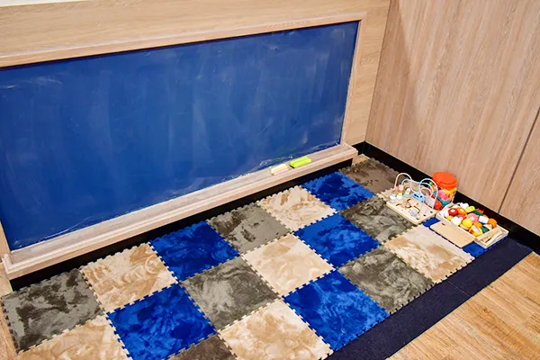 - お子さま連れの方が落ち着いて保険の相談ができるよう、店内にキッズスペースがございます。絵本やおもちゃを揃え、楽しく時間を過ごせるように工夫しております。