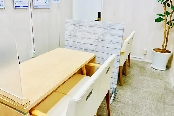 - 当店の相談ブースは椅子2つ分のスペースがあるため、ベビーカーに乗ったお子さまと一緒にご来店された際は、すぐ横でお子さまの様子を見守りながら相談を受けていただくことができます。