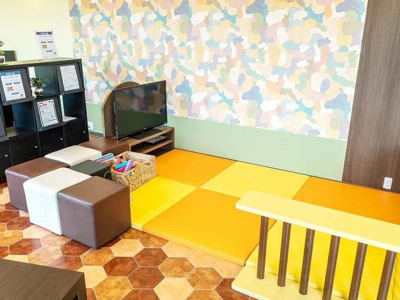 - 店内にキッズスペースを備え、お子さまが楽しく遊びながら保険相談の待ち時間を過ごせるようにしています。