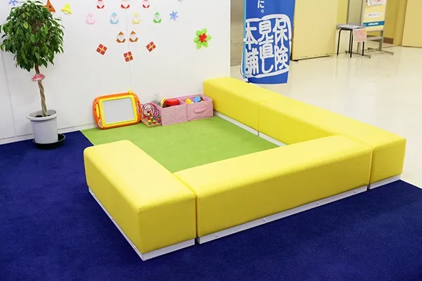 - 店内にキッズスペースを備え、お子さまが楽しく遊びながら保険相談の待ち時間を過ごせるようにしています。