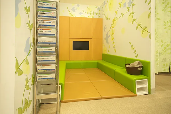 - お子さま連れの方が落ち着いて保険の相談ができるよう、店内にキッズスペースがございます。絵本やおもちゃを揃え、楽しく時間を過ごせるように工夫しております。
