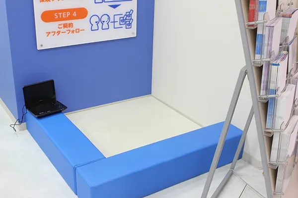 - 店内にキッズスペースを備え、お子さまが楽しく遊びながら保険相談の待ち時間を過ごせるようにしています。「子どもがいるから保険相談に行きづらい」とお悩みの方も、気兼ねなくご予約ください。