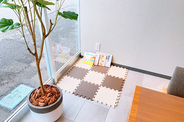 また、駐車場キッズスペースを完備していますのでお車の方も、お子様連れの方もお気軽にご相談ください。