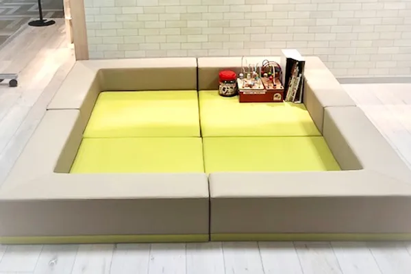 - 店内にキッズスペースを備え、お子さまが楽しく遊びながら保険相談の待ち時間を過ごせるようにしています。