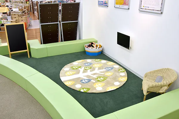 - 店内にキッズスペースを備え、お子さまが楽しく遊びながら保険相談の待ち時間を過ごせるようにしています。