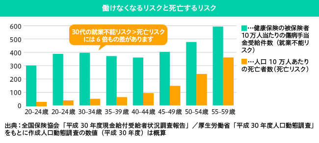 30代の「働けなくなるリスク」は「死亡するリスク」の6倍以上!?