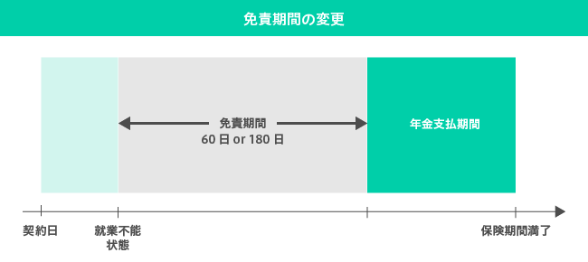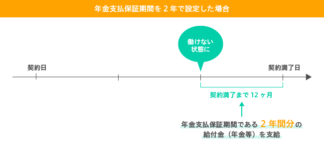 このケースで仮に64歳(契約満了まで12ヶ月)で就業不能状態になった場合、年金は12ヶ月分ではなく2年間分受け取ることができます。