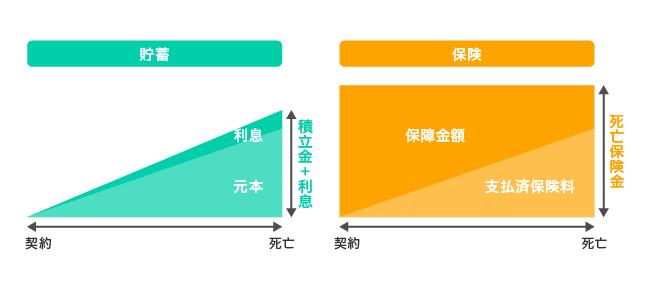 この違いを簡単に説明すると「貯蓄は三角、保険は四角」のイメージで考えてみると良いでしょう。