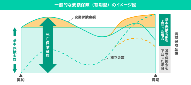 基本保険金額を確保しながら、特別勘定の運用方針を契約者自身で決めて、その運用実績によって満期保険金額や解約時の払いもどし金額が変動する生命保険です。