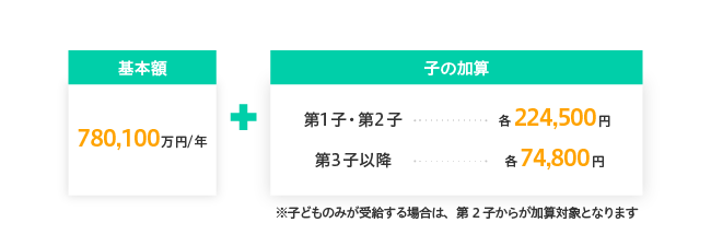 「子どものいる妻・夫」または「子ども」が受給でき、子どもの人数によって、金額が加算されます。